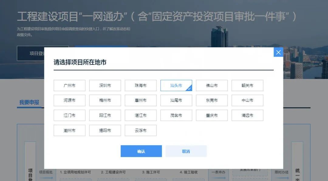 3. 点击“项目登记赋码”,选择项目所在地市,点击确定。