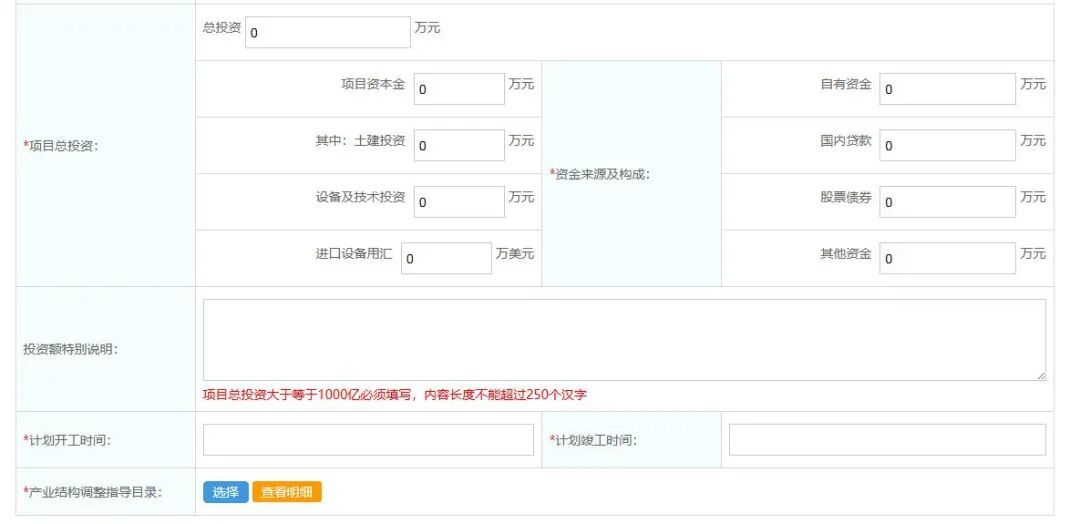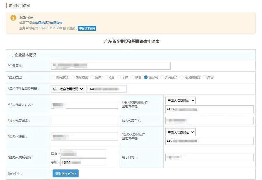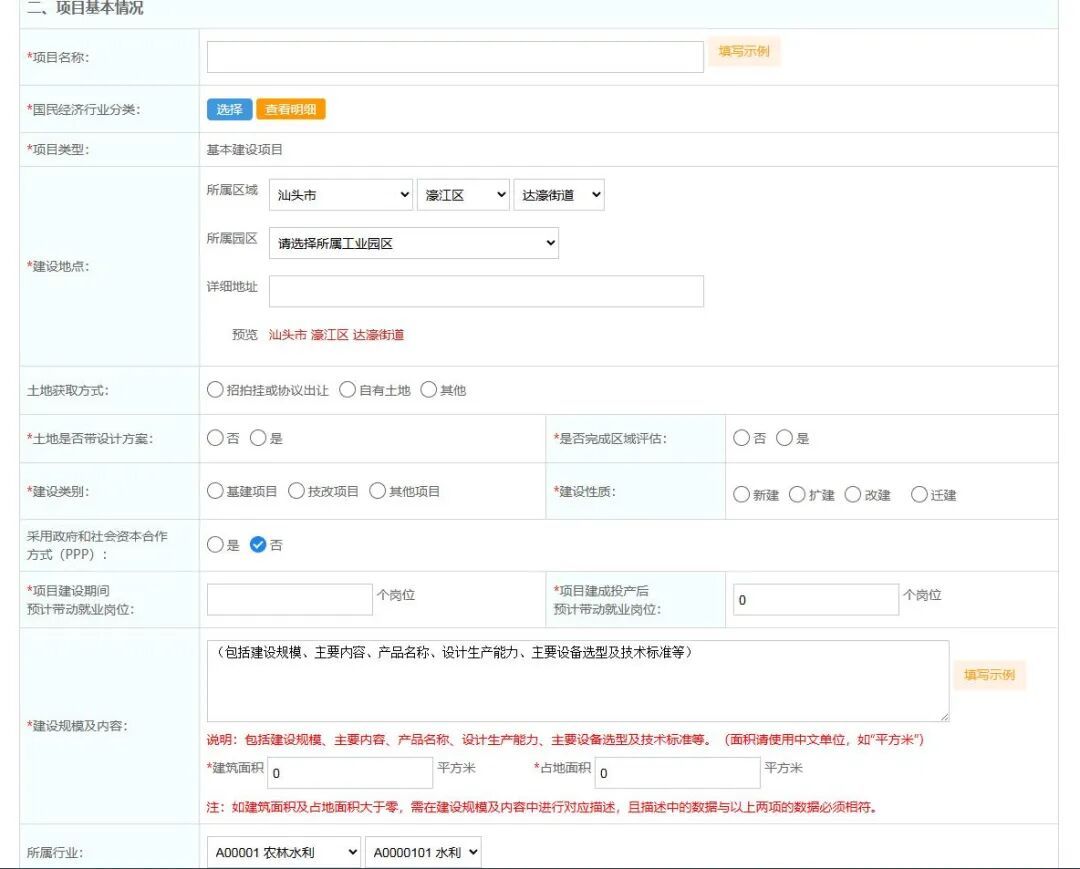 4. 在线填写“广东省企业投资项目备案申请表”。